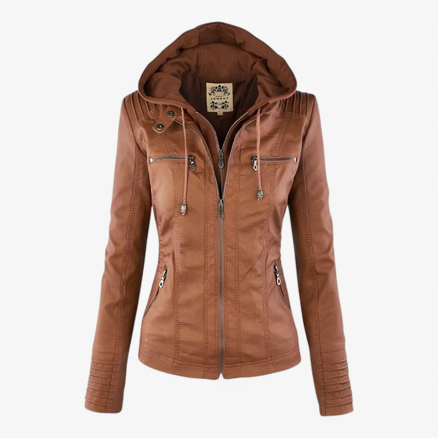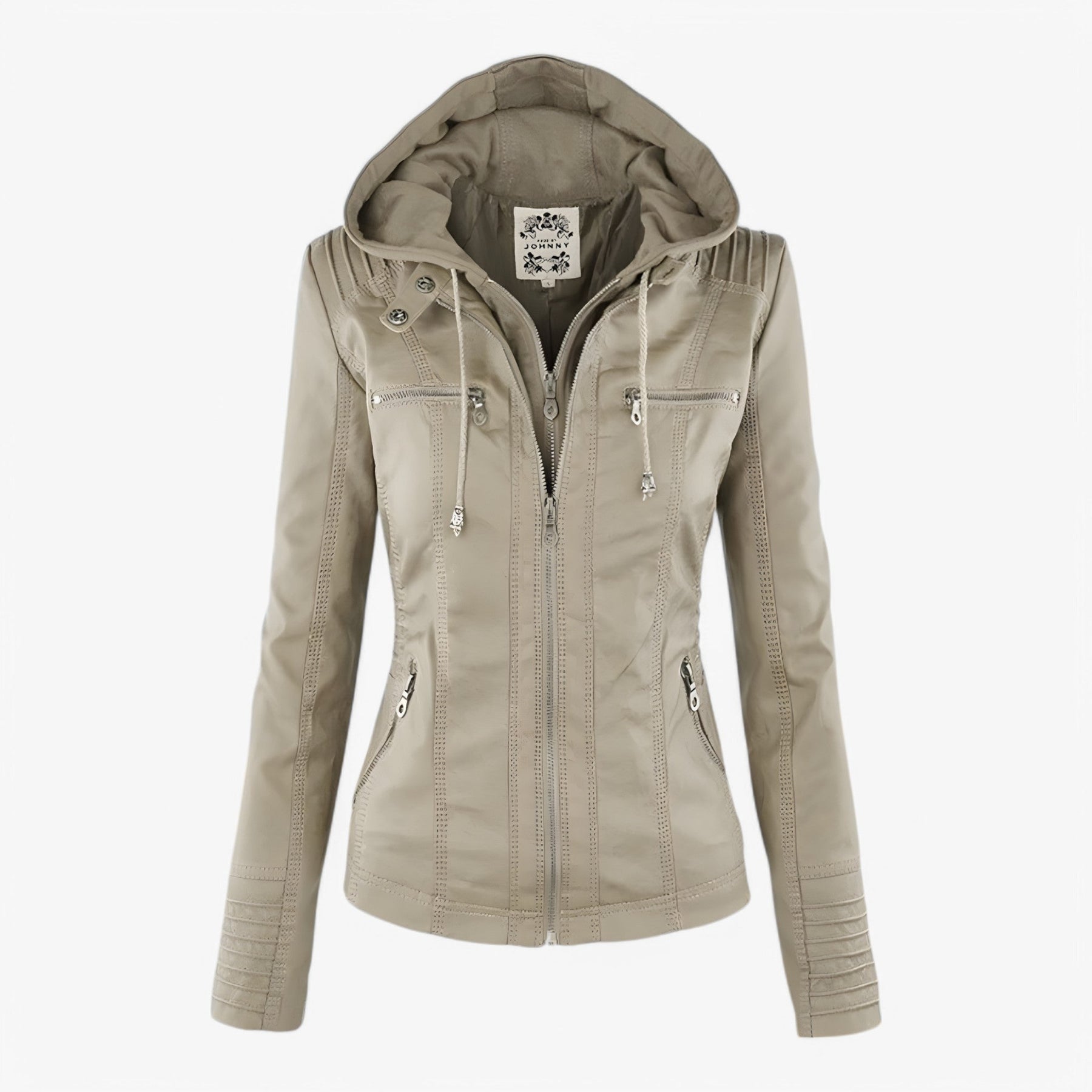 The Autlen hooded faux Leather Jacket features a contemporary silhouette that combines classic style with modern flair. Its clean lines and tailored fit ensure you look polished and sophisticated, whether at the office or enjoying a night out.