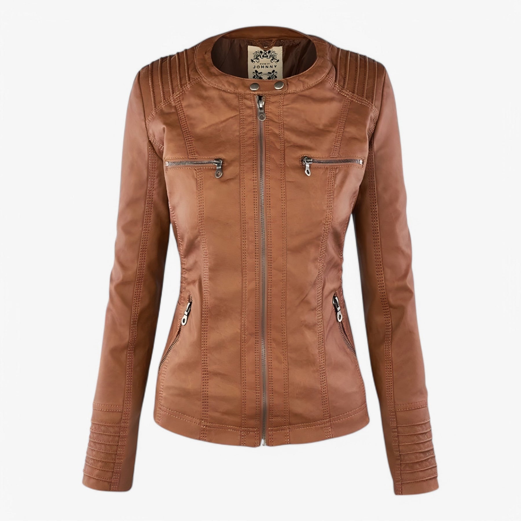 This jacket is crafted from high-quality faux leather, renowned for its softness and exceptional durability. Over time, the genuine leather molds to your body, becoming even more beautiful with age.